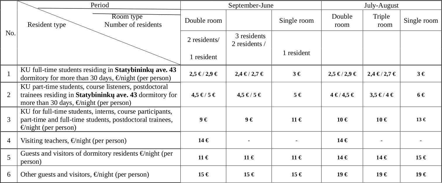 ALL OTHER STUDENTS should submit completed application to: bendrabutis@ku.lt. Applicants are included in waiting list with residents who requested dormitory change and are ranked according to the date of application. Preference is given to students who live in one of the dormitories at least one semester. You will be informed if and when you can be accommodated.