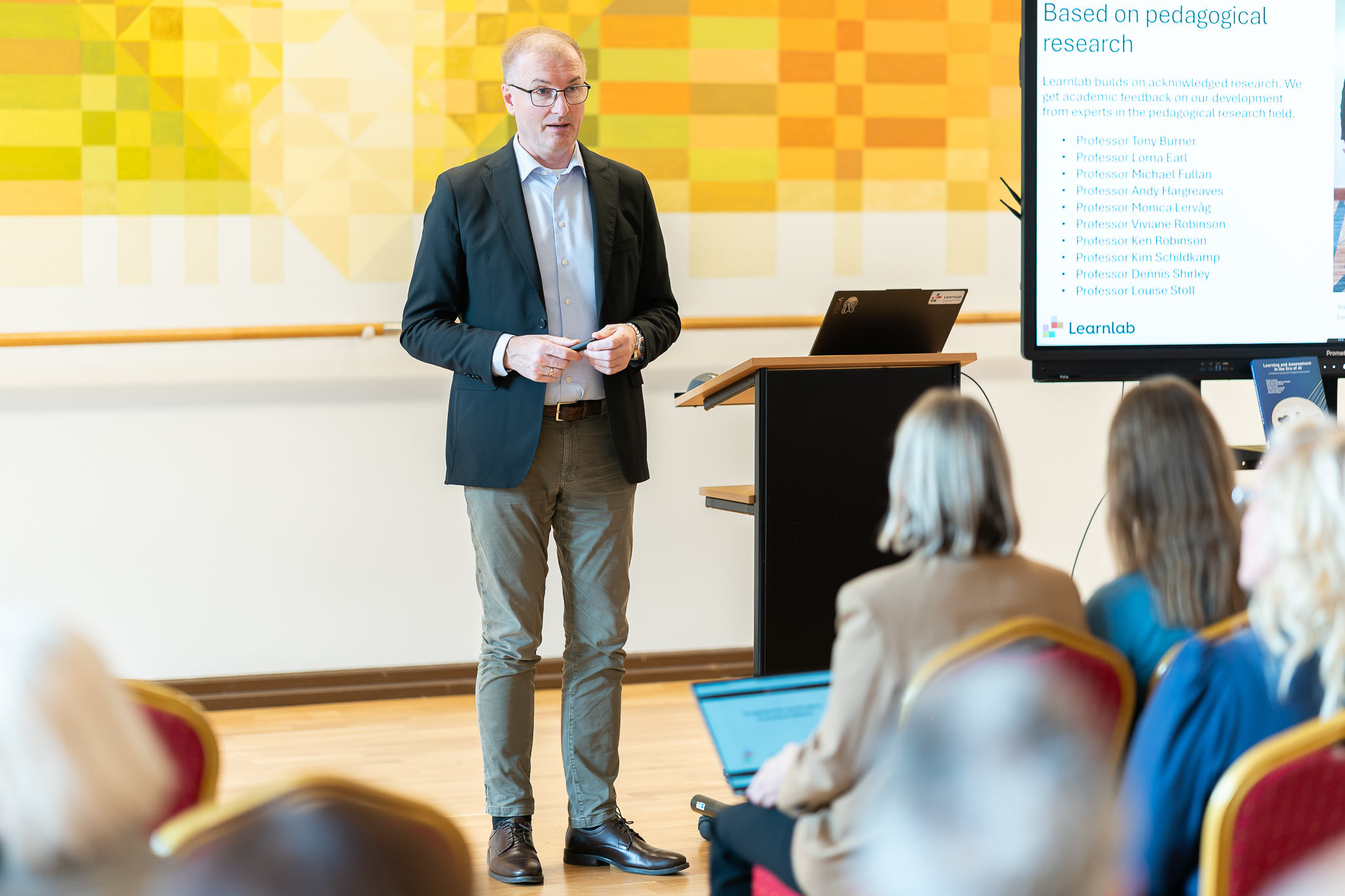 LearnLab generalinis direktorius Yngve Lindvig diskusijos dalyviams pristatė įžvalgas apie skaitmeninę pedagogiką, o su „LearnLab“ mokymo(si) platformos galimybėmis Lietuvos mokykloms supažindino LearnLab atstovės Norvegijoje Kristine Østbye ir Kristina Rummelhoff.