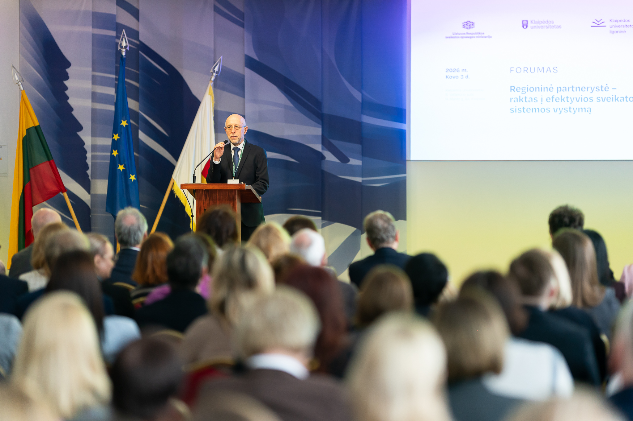 KU rektorius prof. dr. Artūras Razbadauskas pabrėžė, kad šis Sveikatos forumas yra svarbi platforma skirtingoms institucijoms susitikti ir ieškoti bendrų sprendimų. „Regioninė partnerystė šiandien tampa būtinybe, jei siekiame užtikrinti efektyvią, pacientui prieinamą ir mokslo pažanga grįstą sveikatos