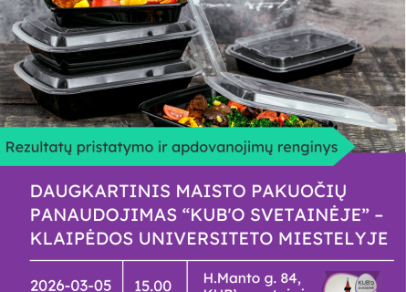 DAUGKARTINIS MAISTO PAKUOČIŲ PANAUDOJIMAS “KUB'O SVETAINĖJE” – KLAIPĖDOS UNIVERSITETO MIESTELYJE